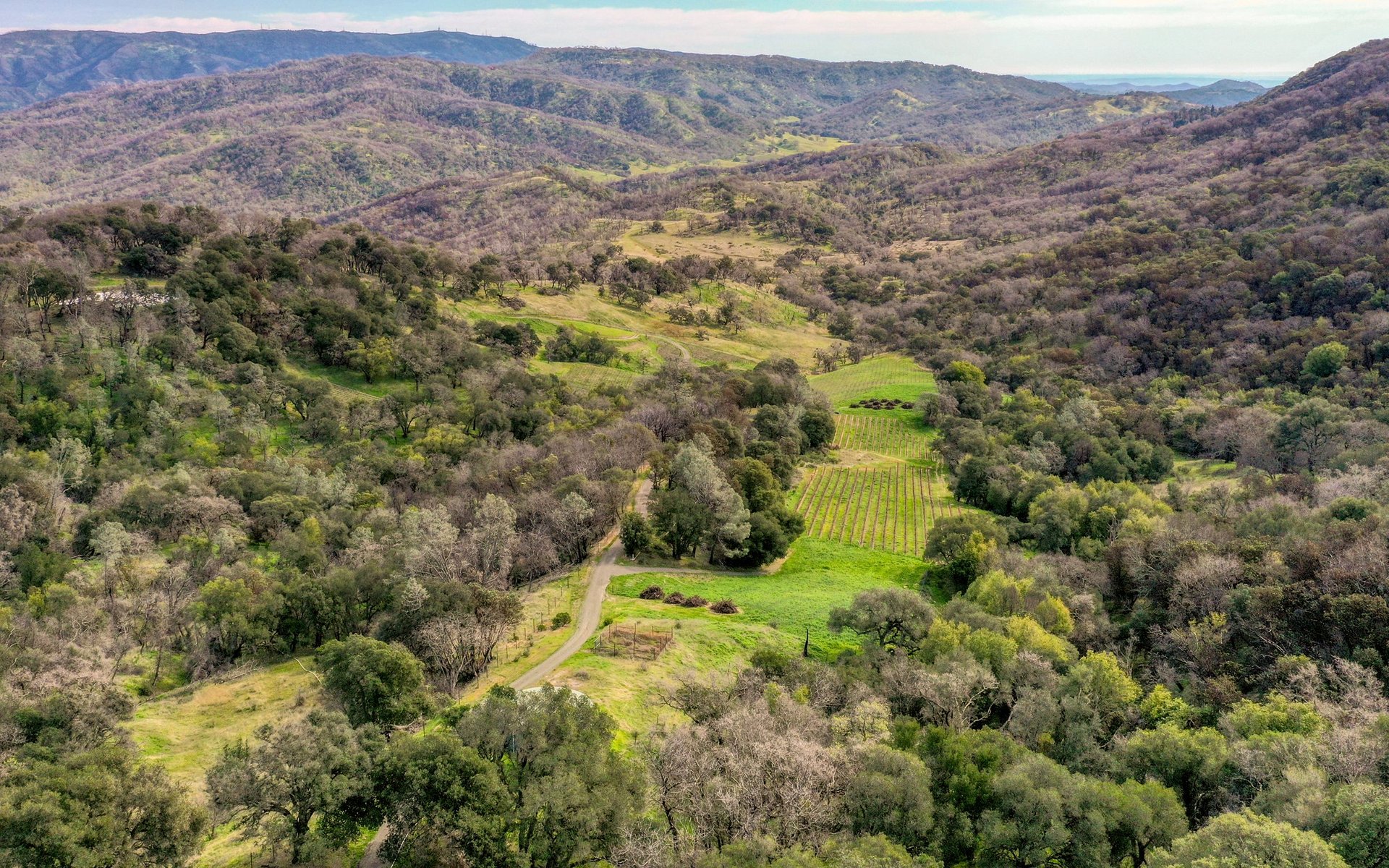 Hillside and valley floor building sites for custom residential and vineyard development.